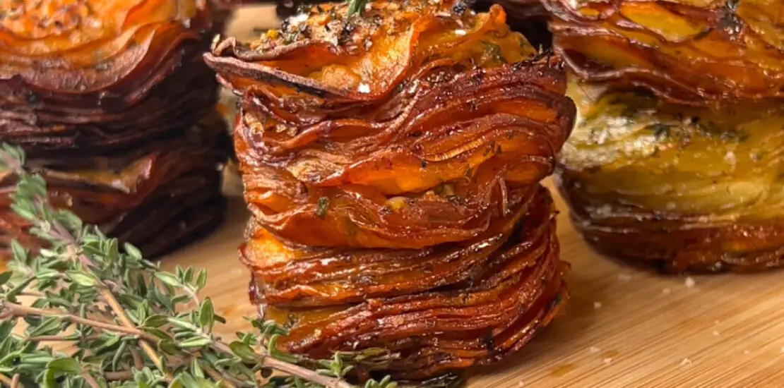 Bacon Fat Yukon Gold Potato Stack on the Blackstone