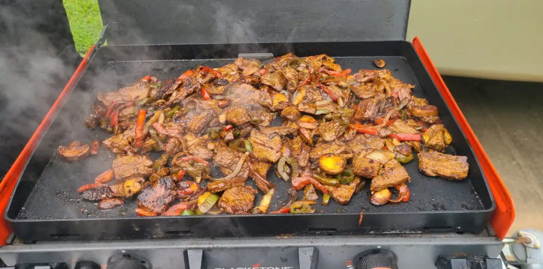 Blackstone Griddle Fajita/Taco Bar (Steak, Peppers, Onions & Refried Beans)