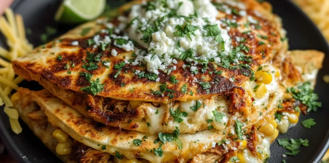 Chicken & chorizo quesadillas, rice and Mexican street corn for dinner!
