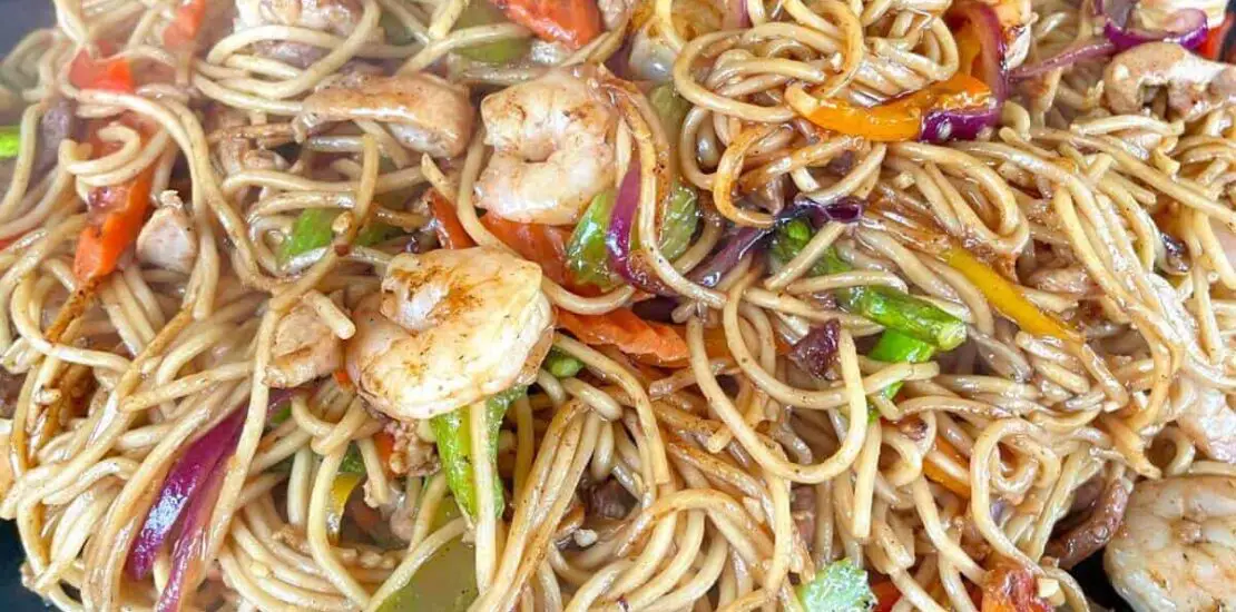 Full Asian Griddle Feast: Chicken Lo Mein, Saucy Beef, & Fried Rice