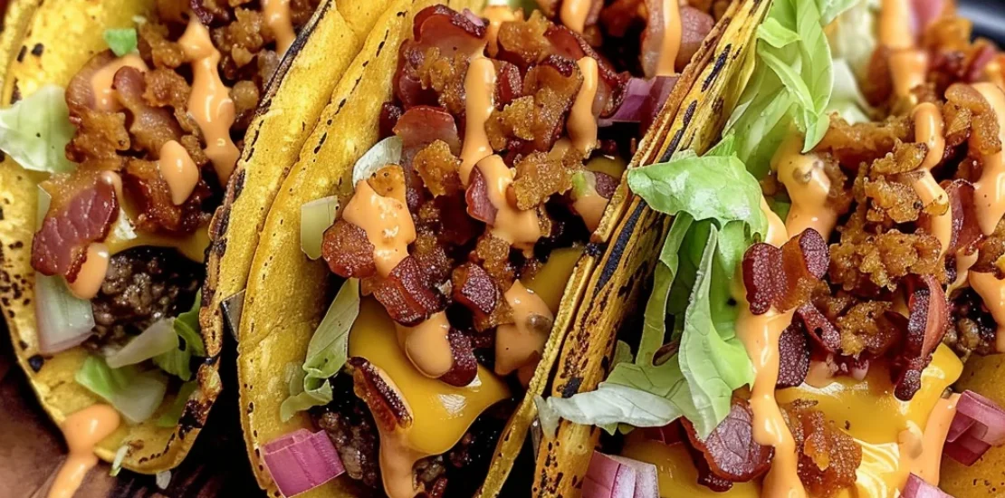 Cook the Taco Meat: Add the ground beef to the griddle (you can use some of the reserved bacon grease or a little oil if needed). Use your spatula or chopper to break up the beef into small crumbles as it cooks.